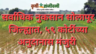 अतिवृष्टीग्रस्त ८४ हजार ३४६ शेतकऱ्यांसाठी ७३ कोटी ५४ लाखांच्या अनुदान वितरणास मान्यता सर्वाधिक नुकसान सोलापूर जिल्ह्यात, ५९ कोटींच्या अनुदानास मंजुरी…