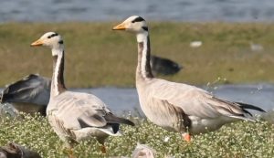 सध्या येथे दाखल झालेले बार-हेडेड गूज हे जगातील सर्वाधिक उंचीवरून उडणारे पक्षी म्हणून ओळखले जातात. हिमालयाच्या पर्वतरांगांवरून ८००० ते ९००० मीटर उंचीवरून उड्डाण करून हे पक्षी भारतात येतात. मजबूत पंख व विलक्षण सहनशक्तीच्या जोरावर हे पक्षी एका दिवसात सुमारे १५०० ते १६०० किलोमीटर अंतर पार करू शकतात. त्यांच्या डोक्यावर असलेल्या विशिष्ट पट्टेदार रचनेमुळे मराठीत त्यांना “पट्टकादंब” असेही म्हणतात. वजन साधारण सहा ते सात किलोपर्यंत असणारे हे मोठ्या आकाराचे पक्षी तलाव, धरणे, नद्या व गवताळ प्रदेशात राहणे पसंत करतात. गवताचे अंकुर, बिया व शेवाळ हे त्यांचे मुख्य खाद्य आहे.